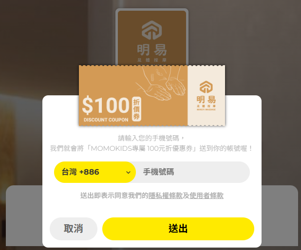 - 參加獎:凡完成表單送出者,可立即領取《明易足體按摩》提供【MOMOKids專屬100元折價券】一張。
