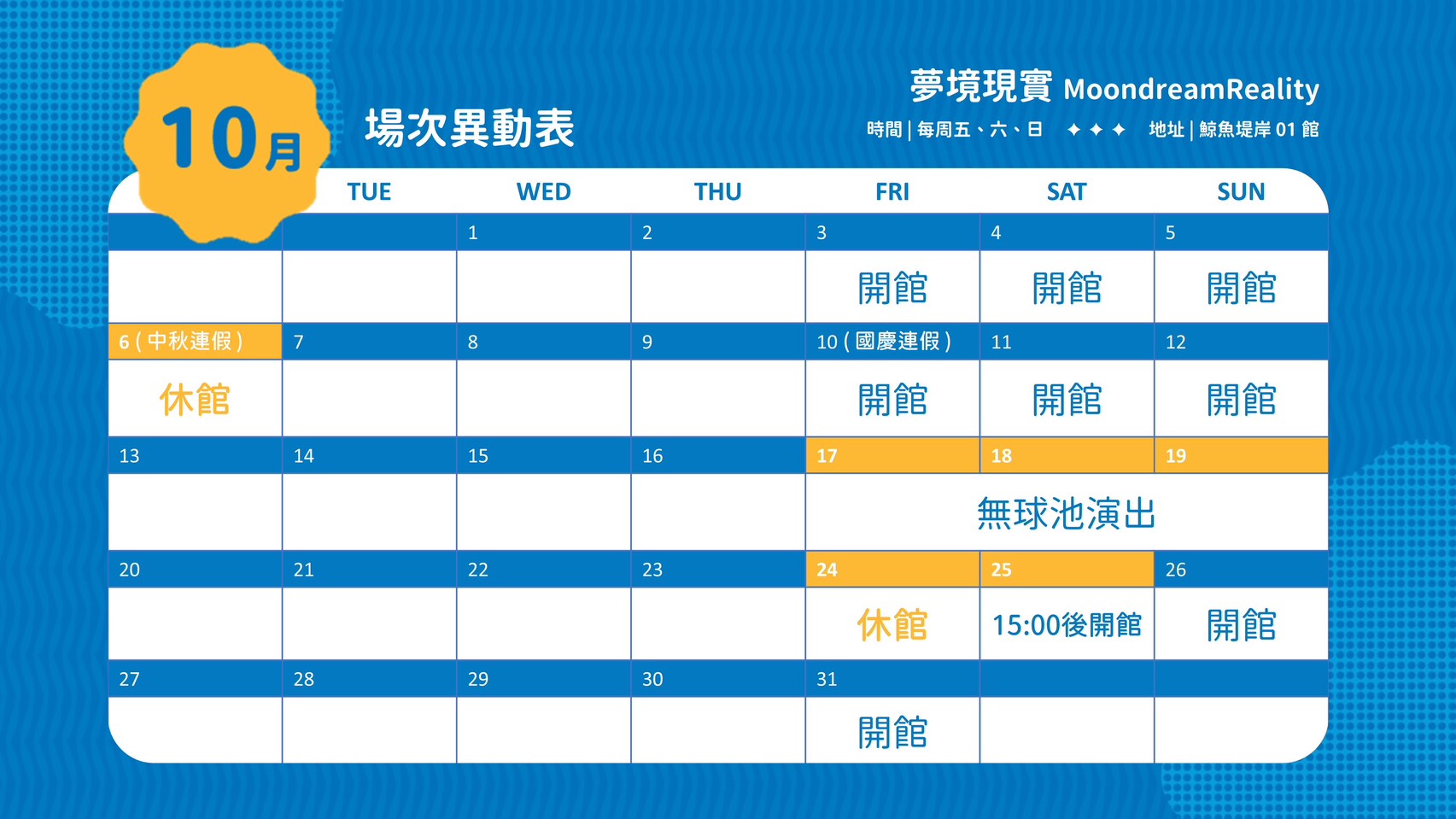 (10月詳細場次異動資訊,請參考下方說明)
