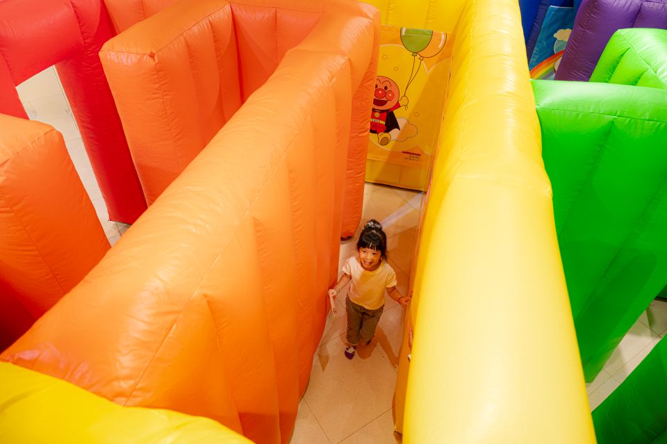 活動設有免費與付費兩大氣墊遊樂區,包含2.5公尺高麵包超人與細菌人造型氣球、主題打卡牆、迷宮跑酷等互動體驗,完成任務還能獲得精美小禮物。