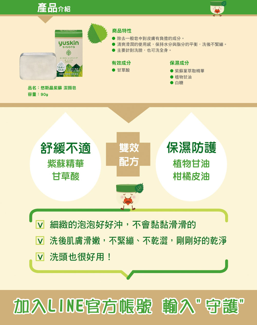 【活動獎品】:《悠斯晶|紫蘇皂 洋甘菊護手霜》共18組。